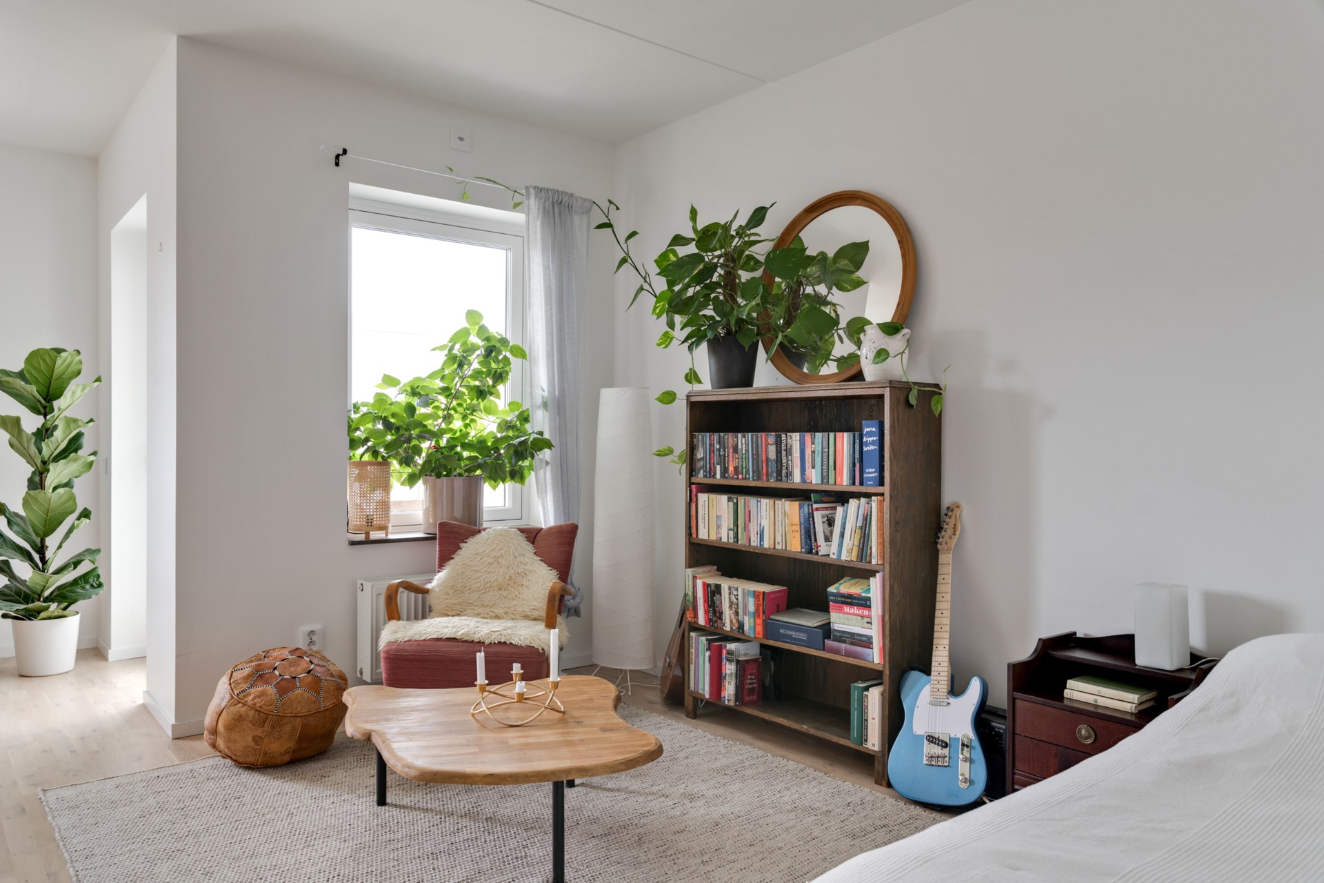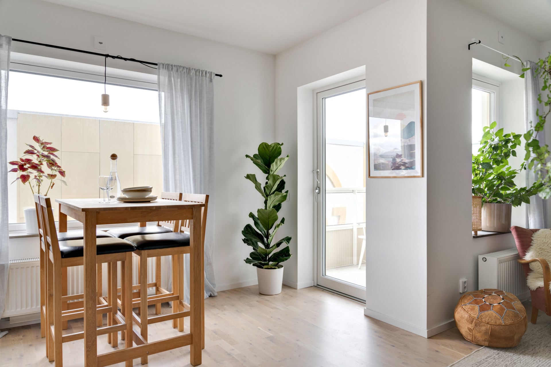 • Vardagsrum: De stora fönstren skapar ett fint ljusinsläpp i lägenheten. Plats för soffa och/eller säng.
