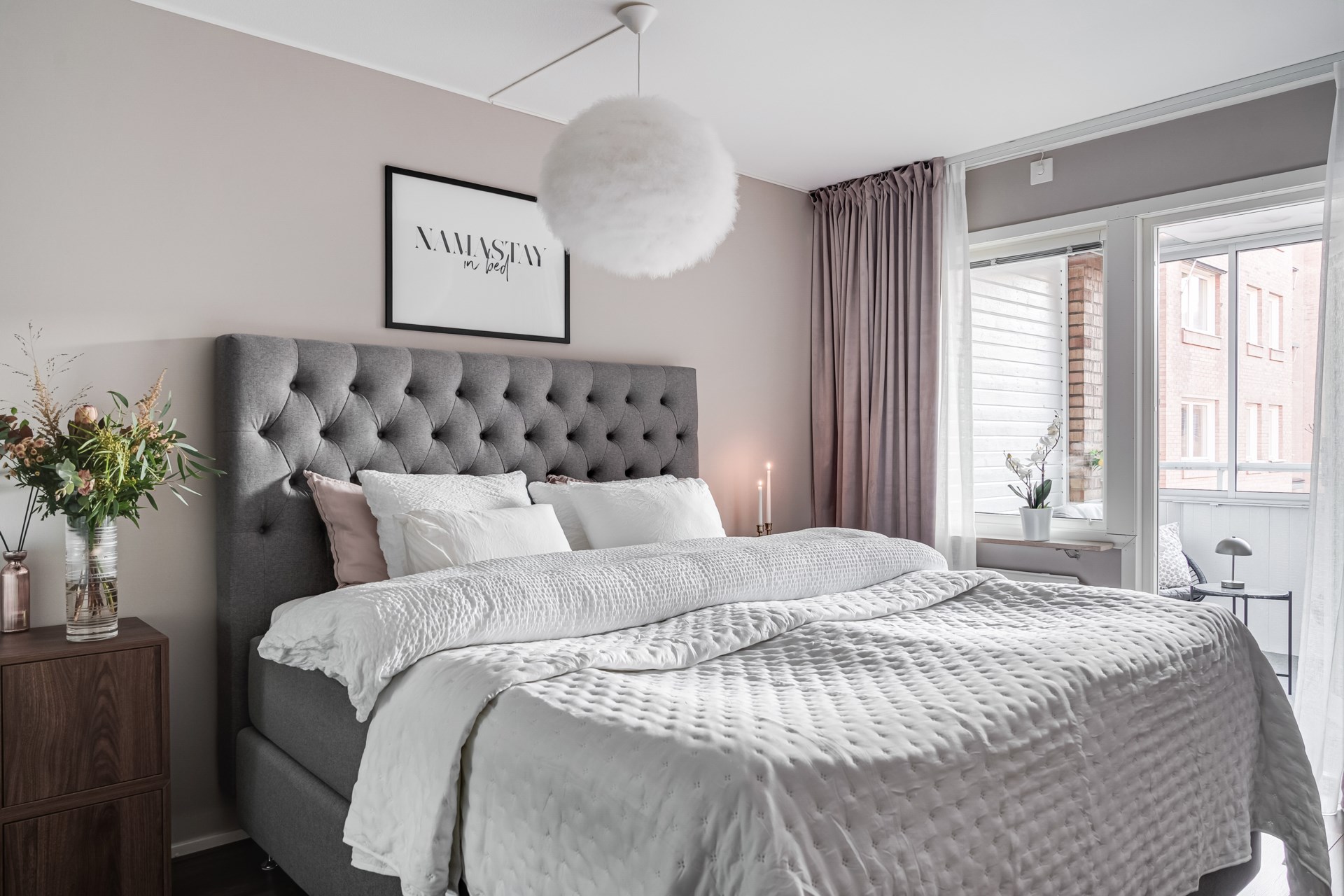 Sovrummet är rofyllt och rymligt, med stora garderober och direkt utgång till den inglasade balkongen – perfekt för morgonkaffet eller en stunds avkoppling med utsikt mot den vackra innergården.