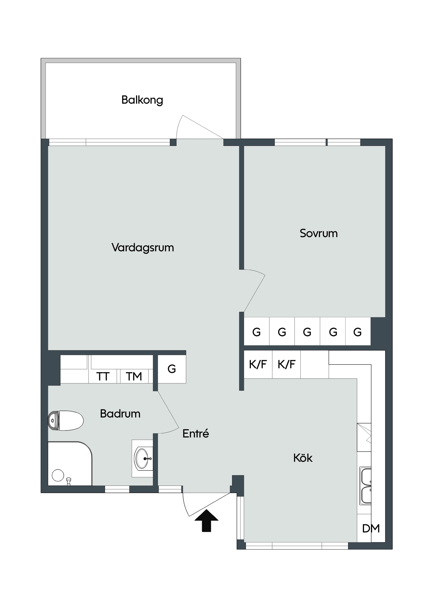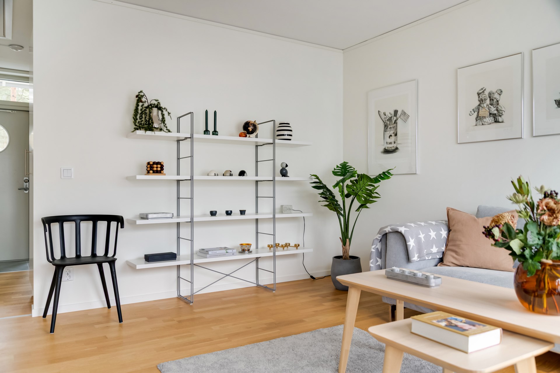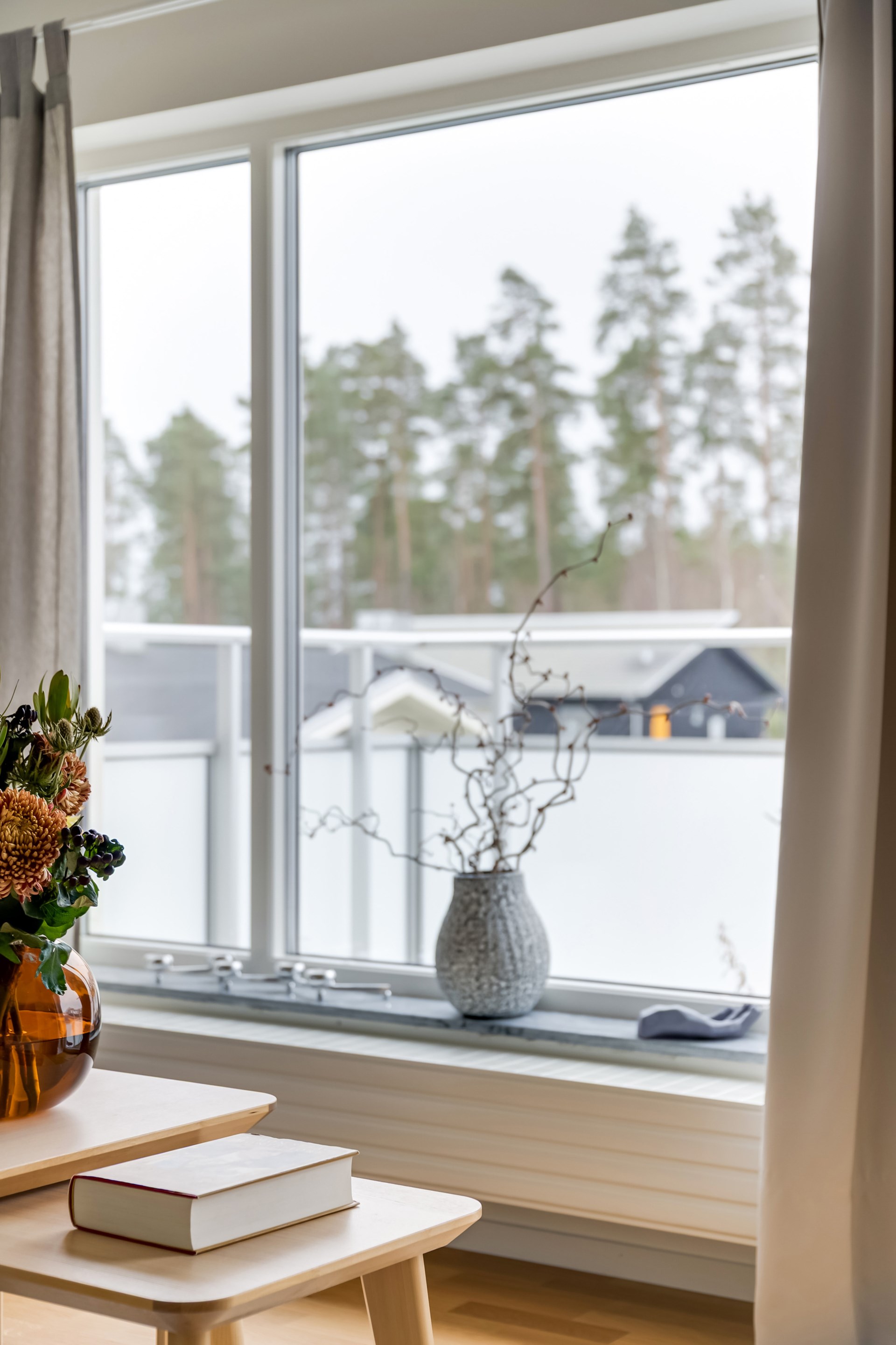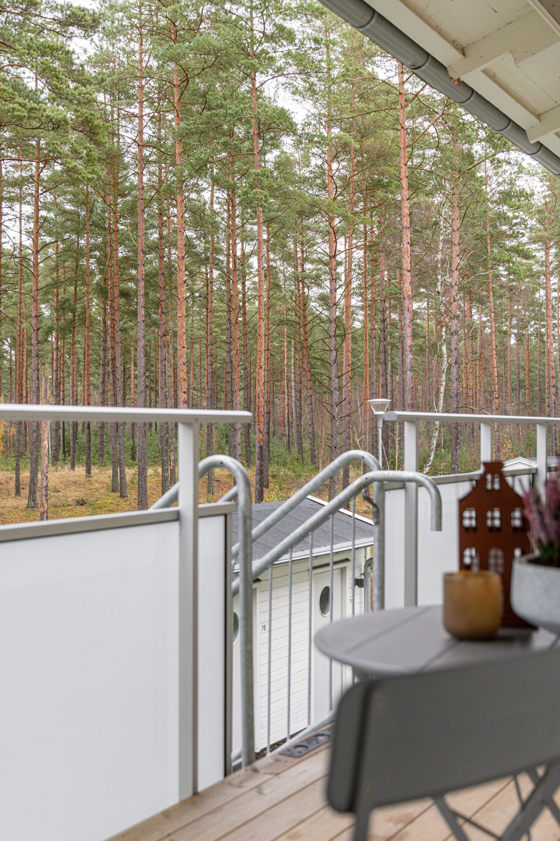 Från vardagsrummet når du den rymliga balkongen utrustad med markis. En perfekt plats att njuta av både soliga eftermiddagar och ljumma sommarkvällar.