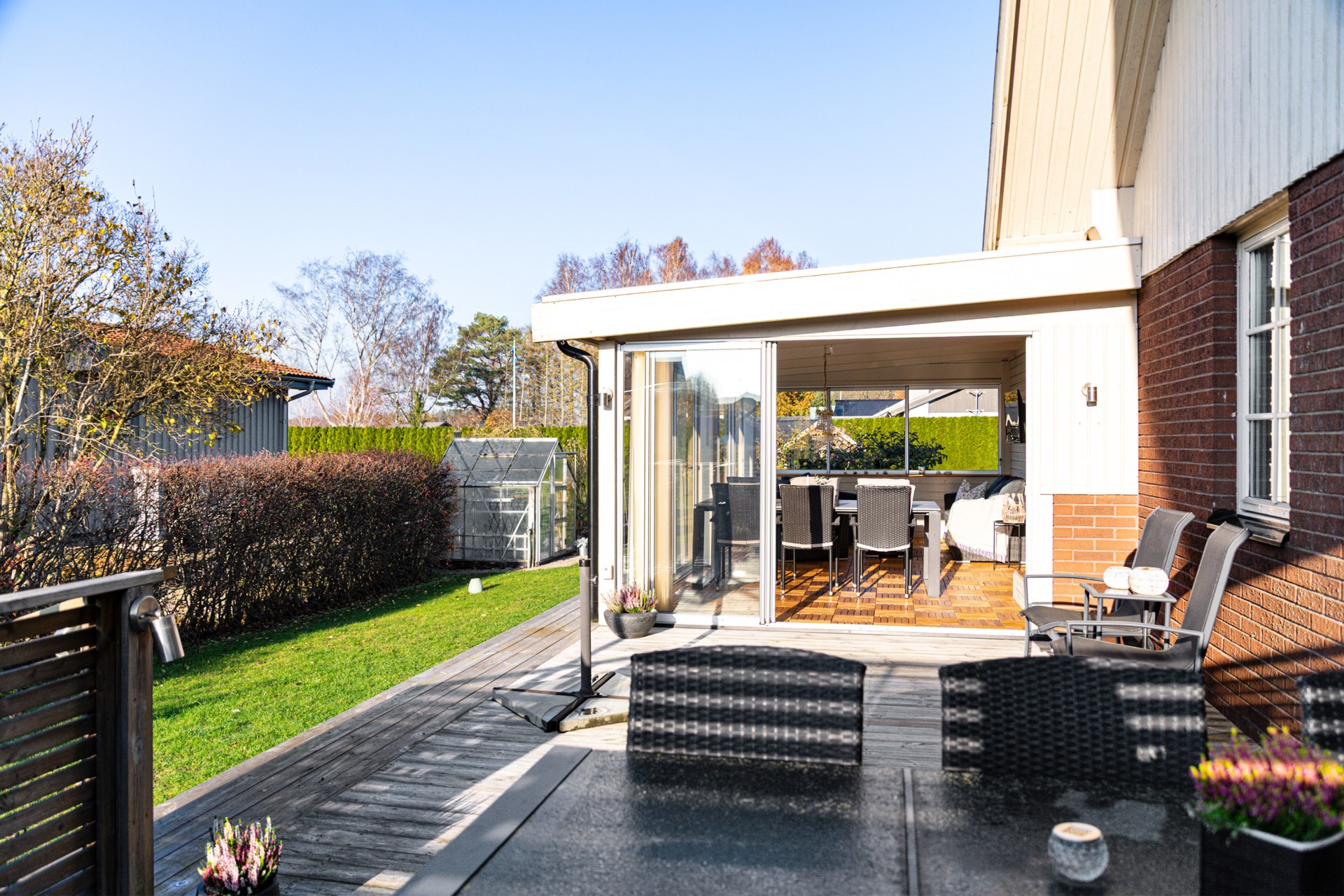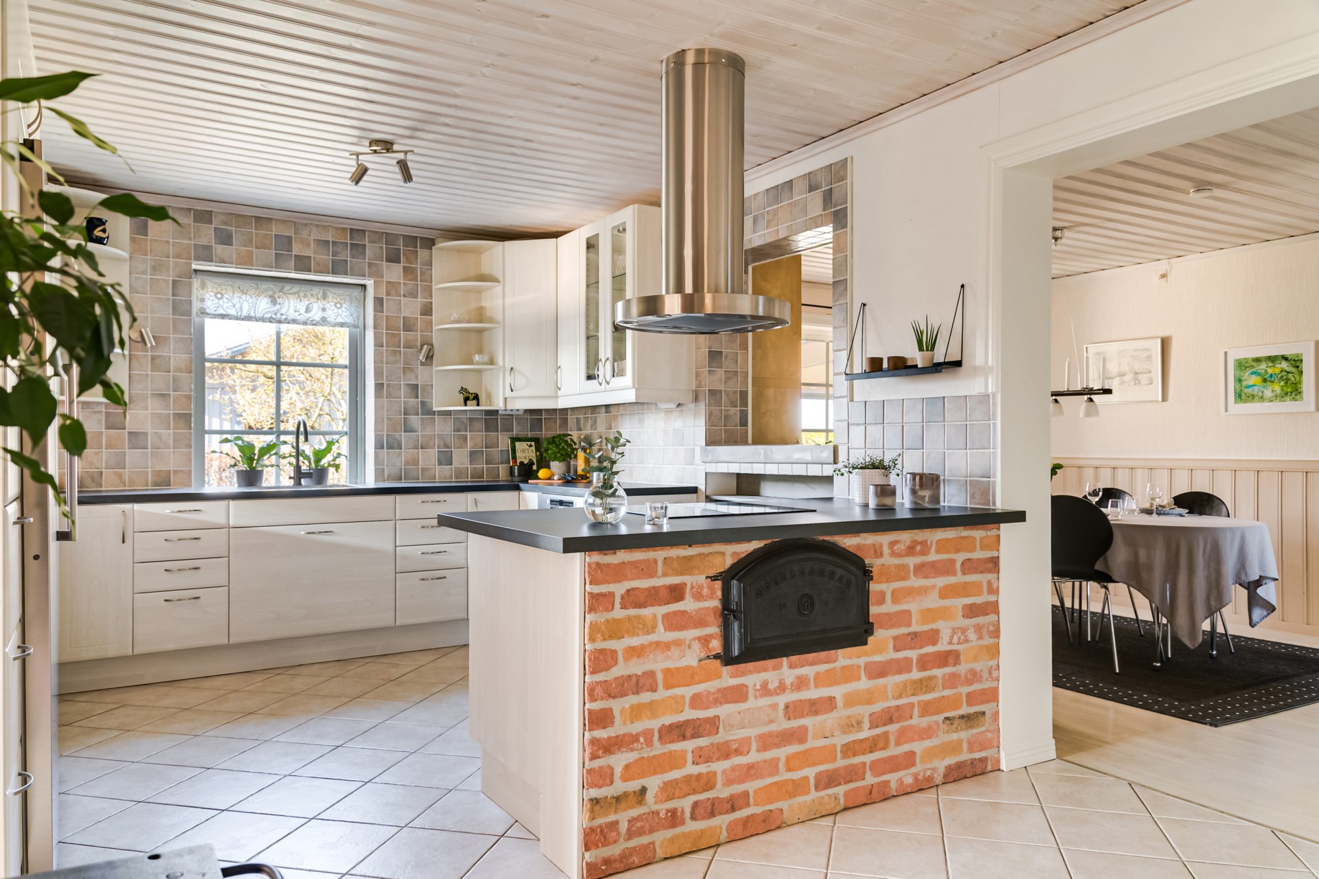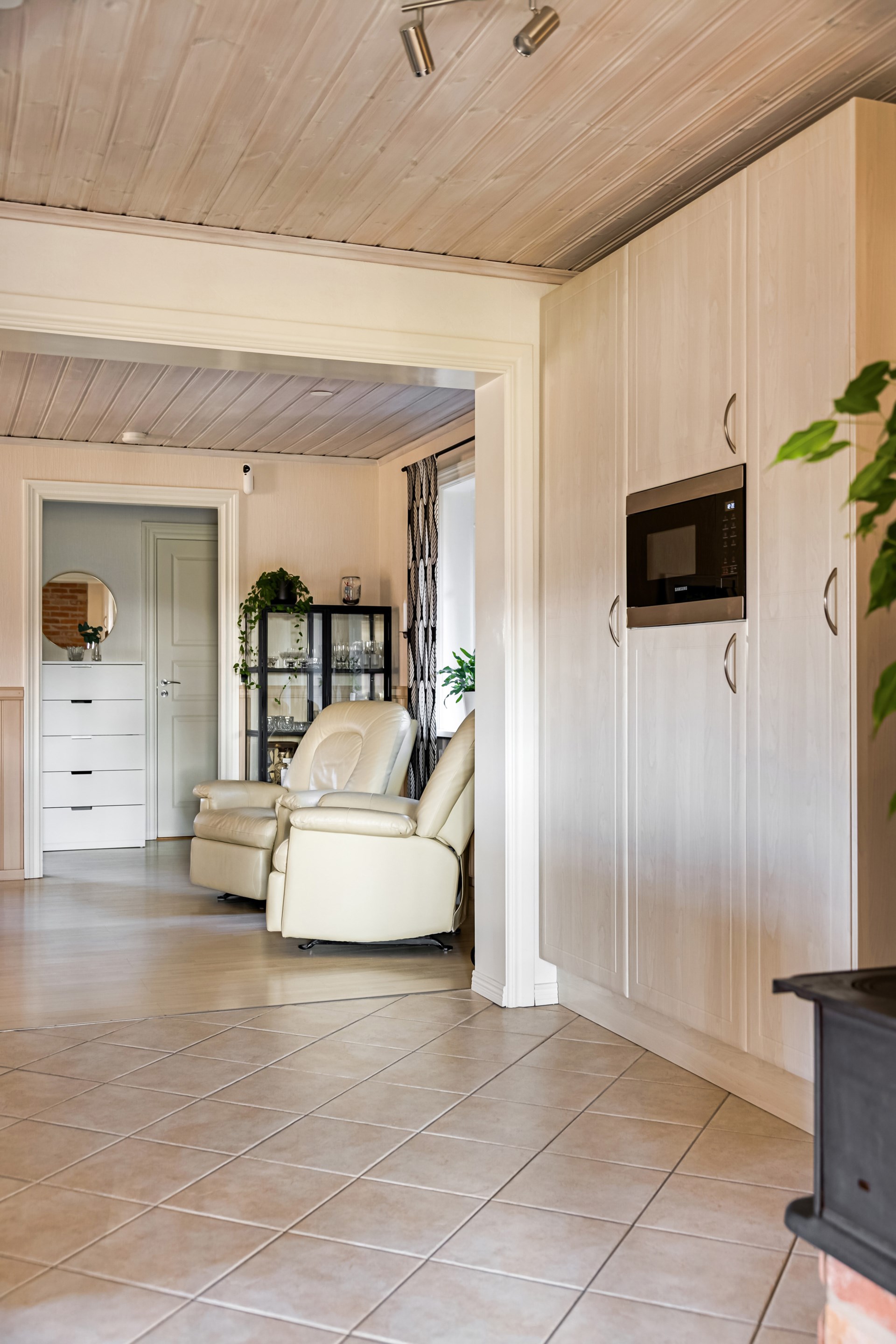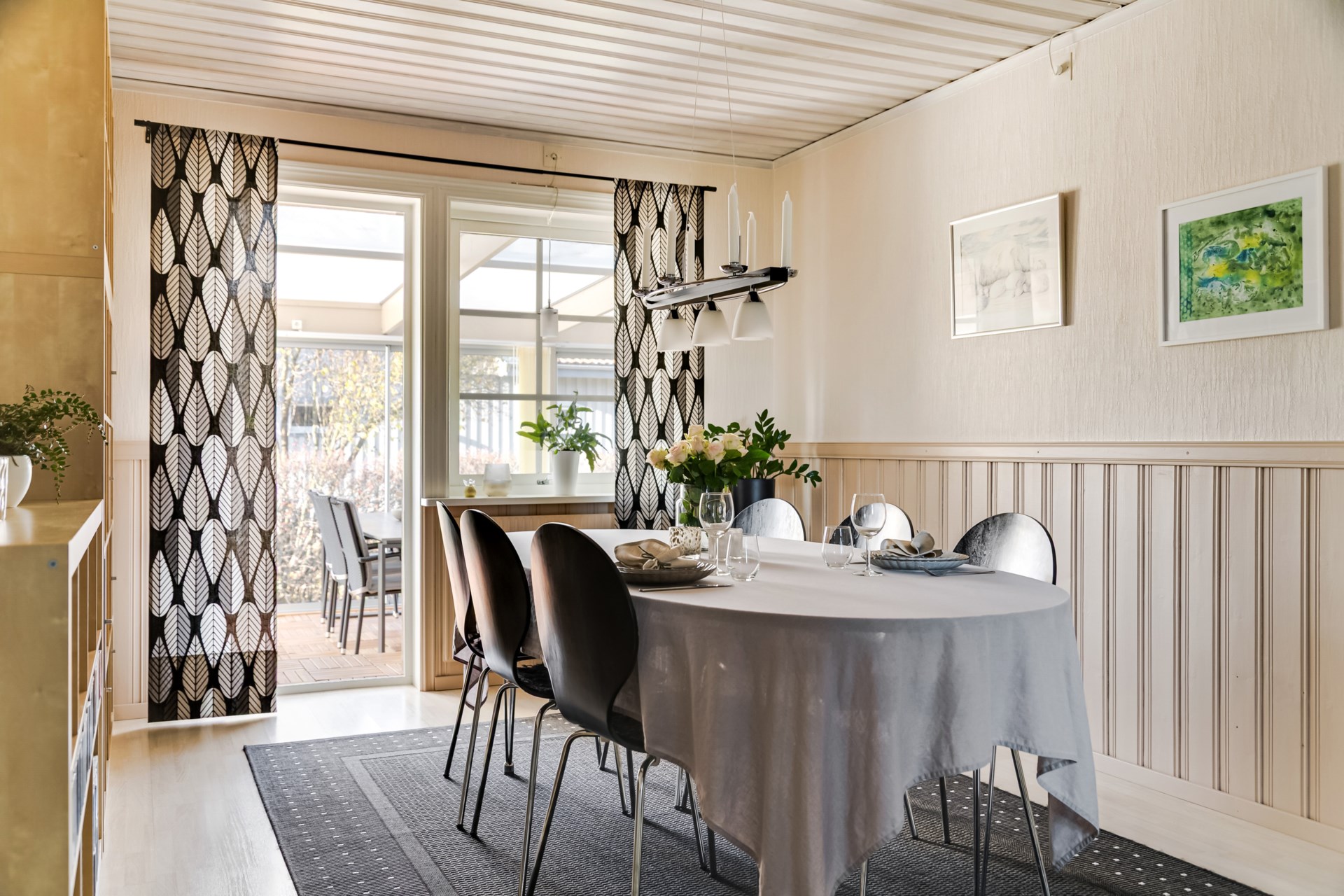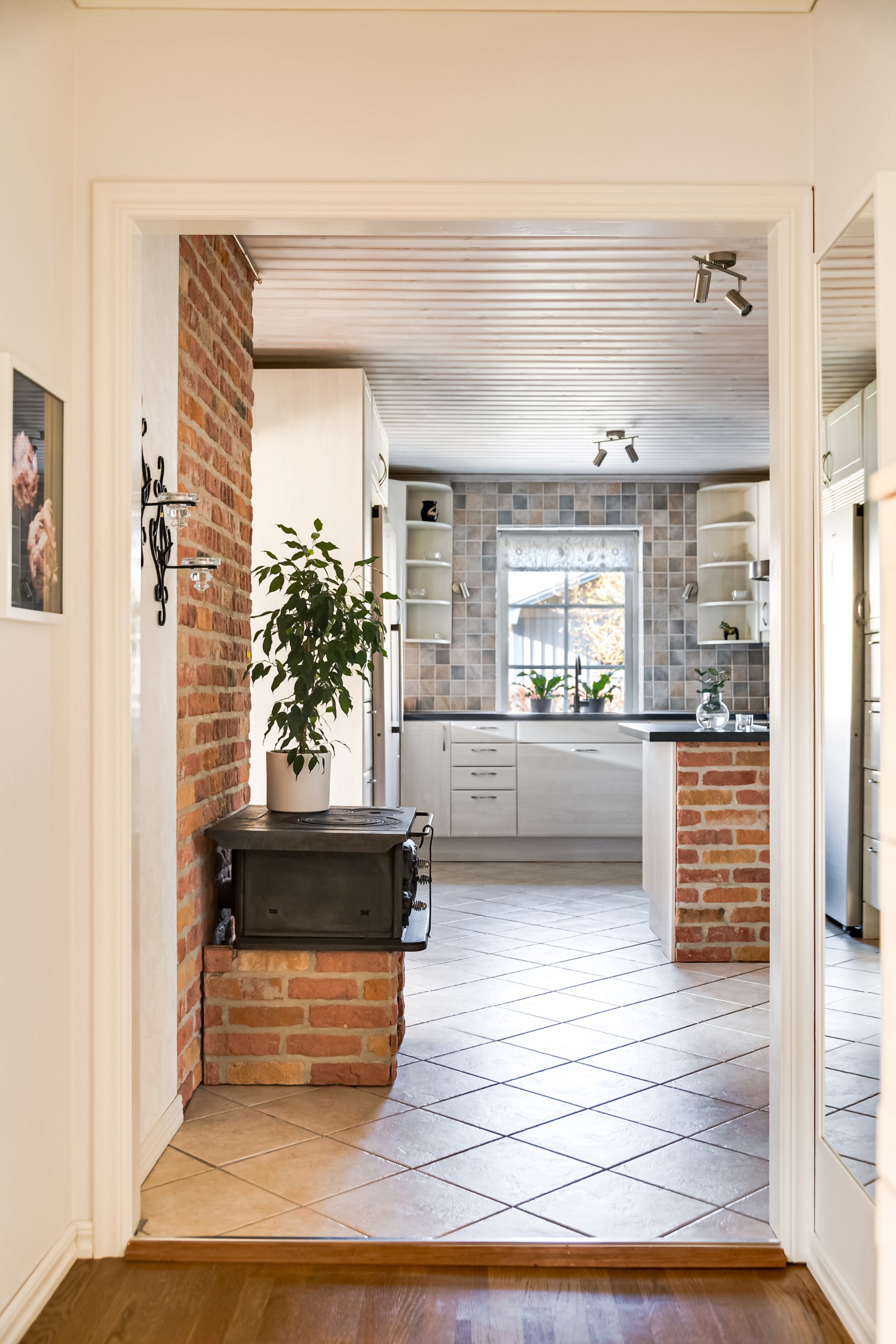 När du stiger in välkomnas du av ett hemtrevligt kök med gott om generösa arbetsytor och plats för hela familjen att samlas. Här har nuvarande ägare varsamt bevarat de vackra äldre detaljerna som ger huset dess unika karaktär. Köket är husets hjärta och är varsamt renoverat med vackra detaljer. Den stora köksön bjuder in till härlig gemenskap med familj och vänner. Stig in i vardagsrummet och du möts av en vacker kamin, här kan du njuta av en sprakande brasa under årets kallare månader. Från köket når du det angränsande matrummet som inbjuder till både vardagsmiddagar och festliga tillställningar. Härifrån leder dörren vidare ut till det inglasade uterummet – en favoritplats som förlänger utesäsongen från tidig vår till sen höst. Genom skjutpartier öppnar uterummet upp mot ett generöst trädäck – perfekt för sommarens grillkvällar och soliga dagar.