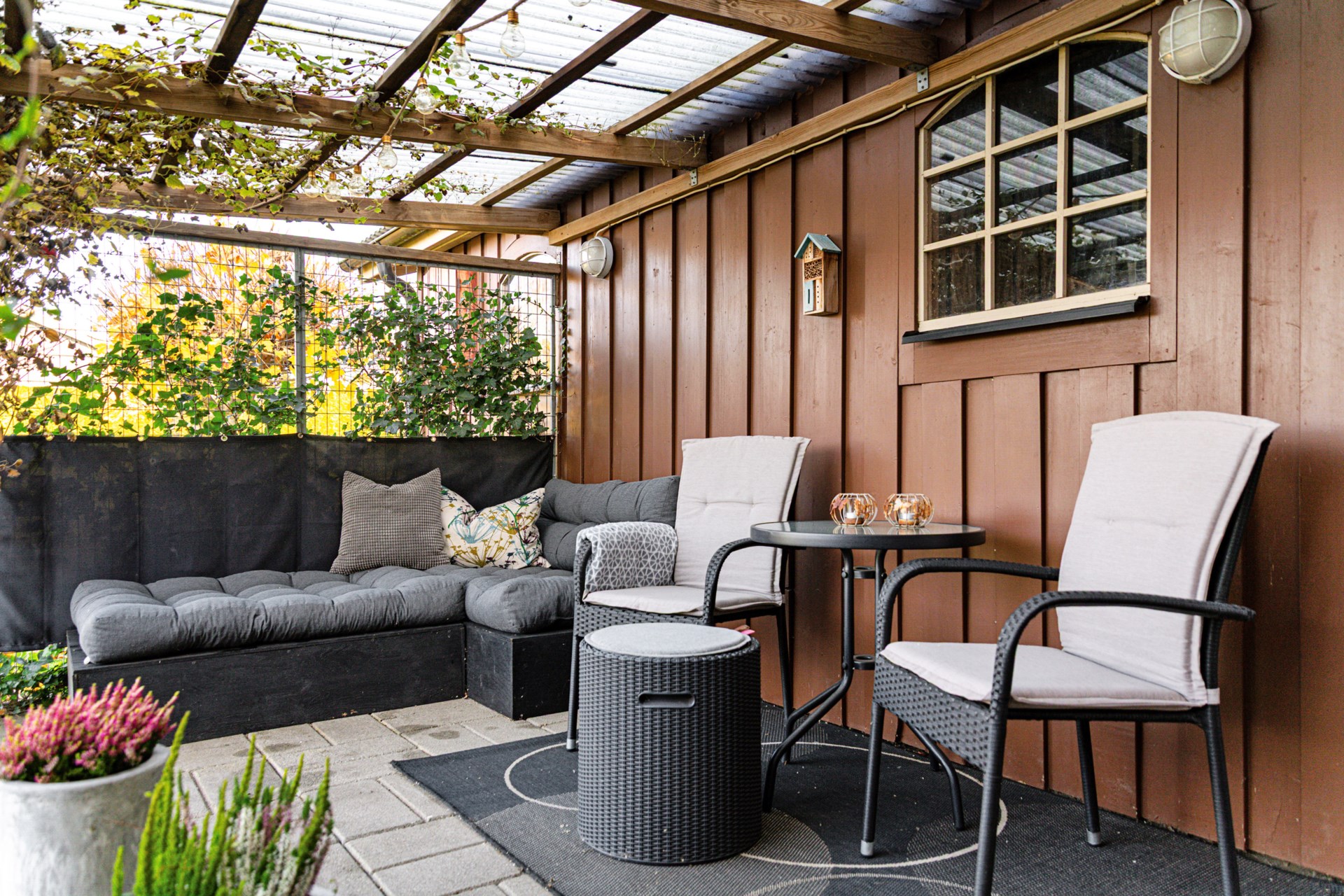 Den lummiga trädgården bjuder på fruktträd, växthus och flera fina uteplatser där du kan njuta av solens gång hela dagen. Här finns också en rymlig uppfart med plats för flera bilar.