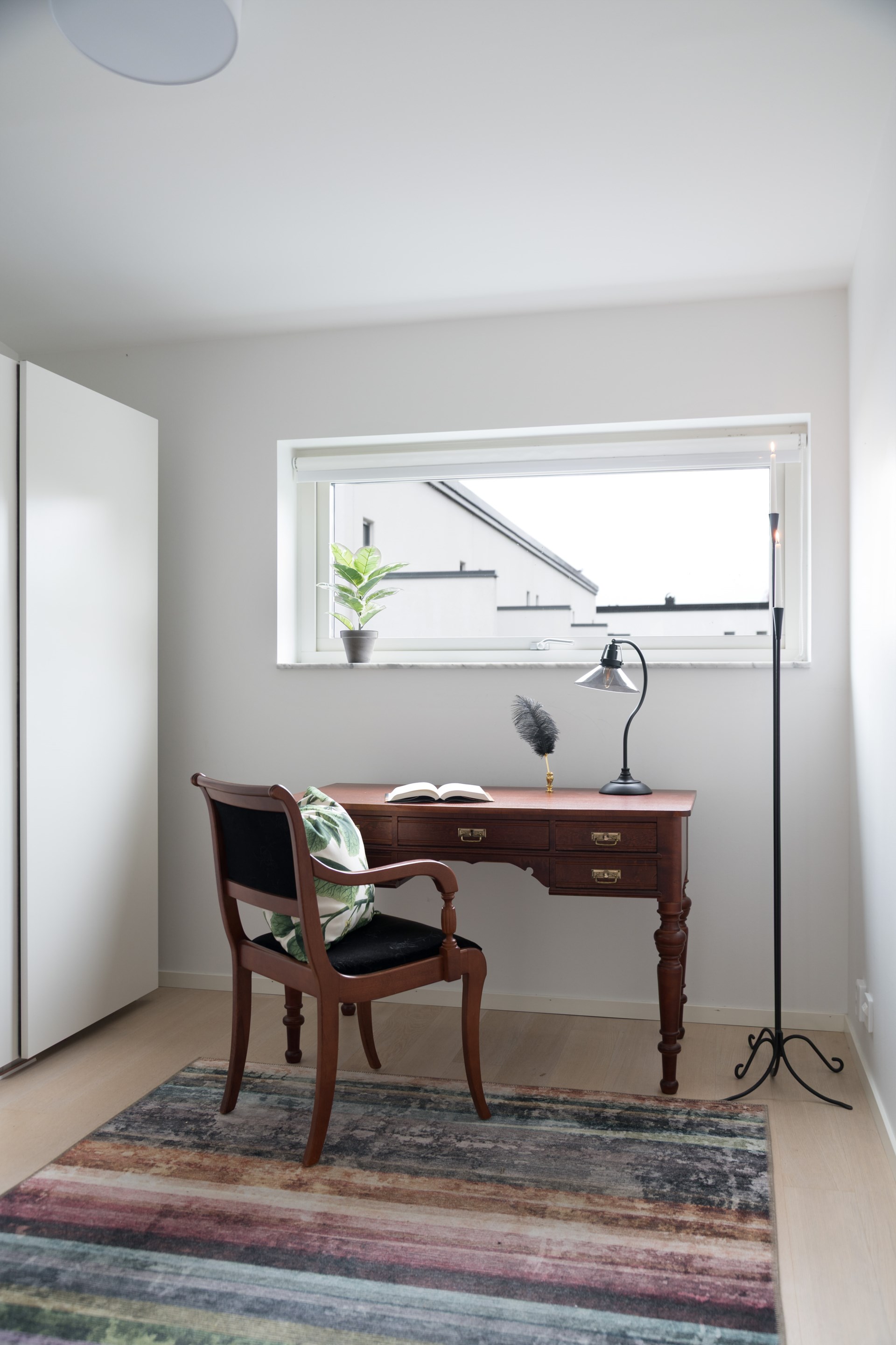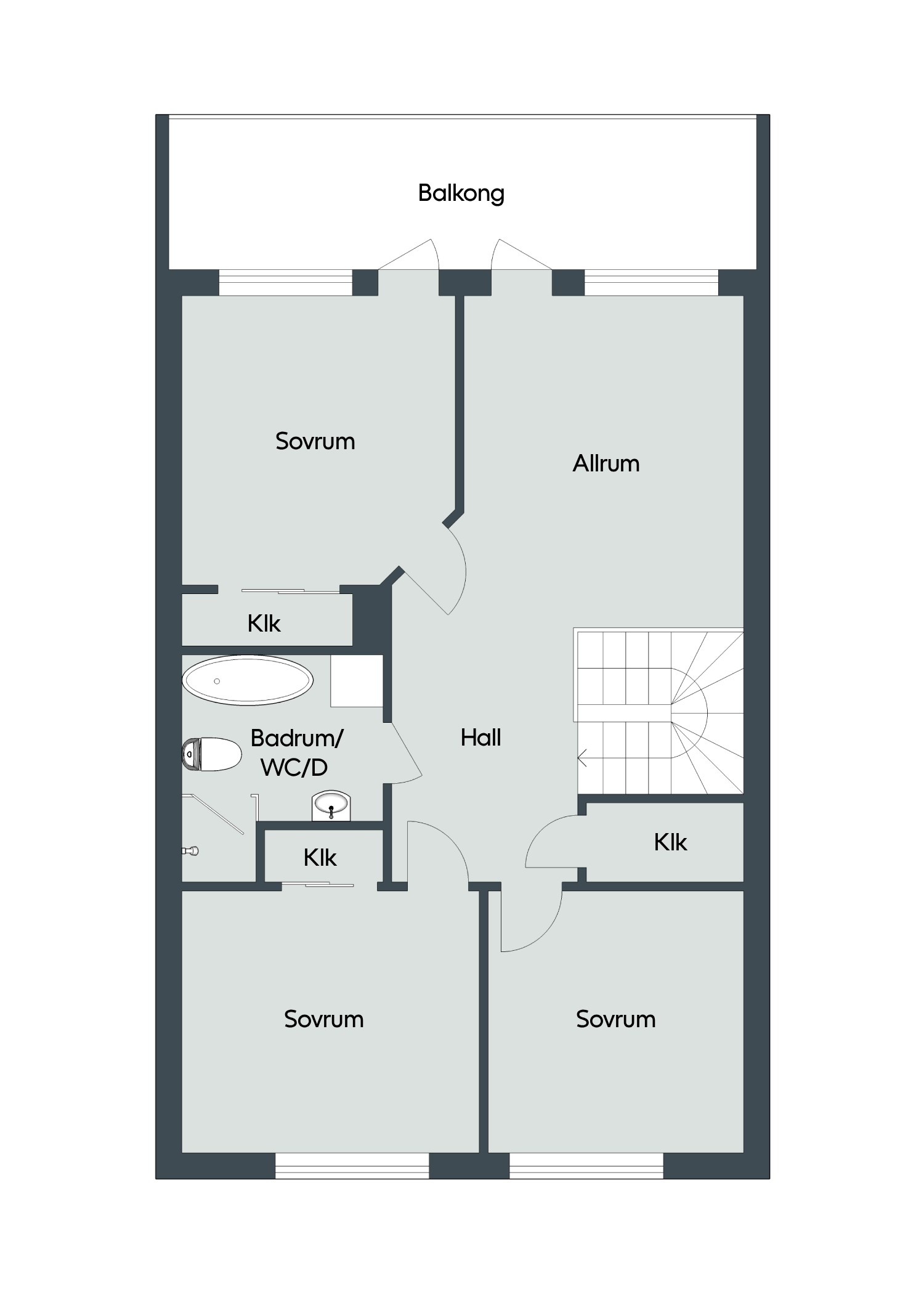 En trappa upp möts du av ett luftigt allrum med fantastisk takhöjd och utgång till balkongen. Här finns också tre inbjudande sovrum, gott om plats till förvaring samt ett badrum med både dusch och badkar.