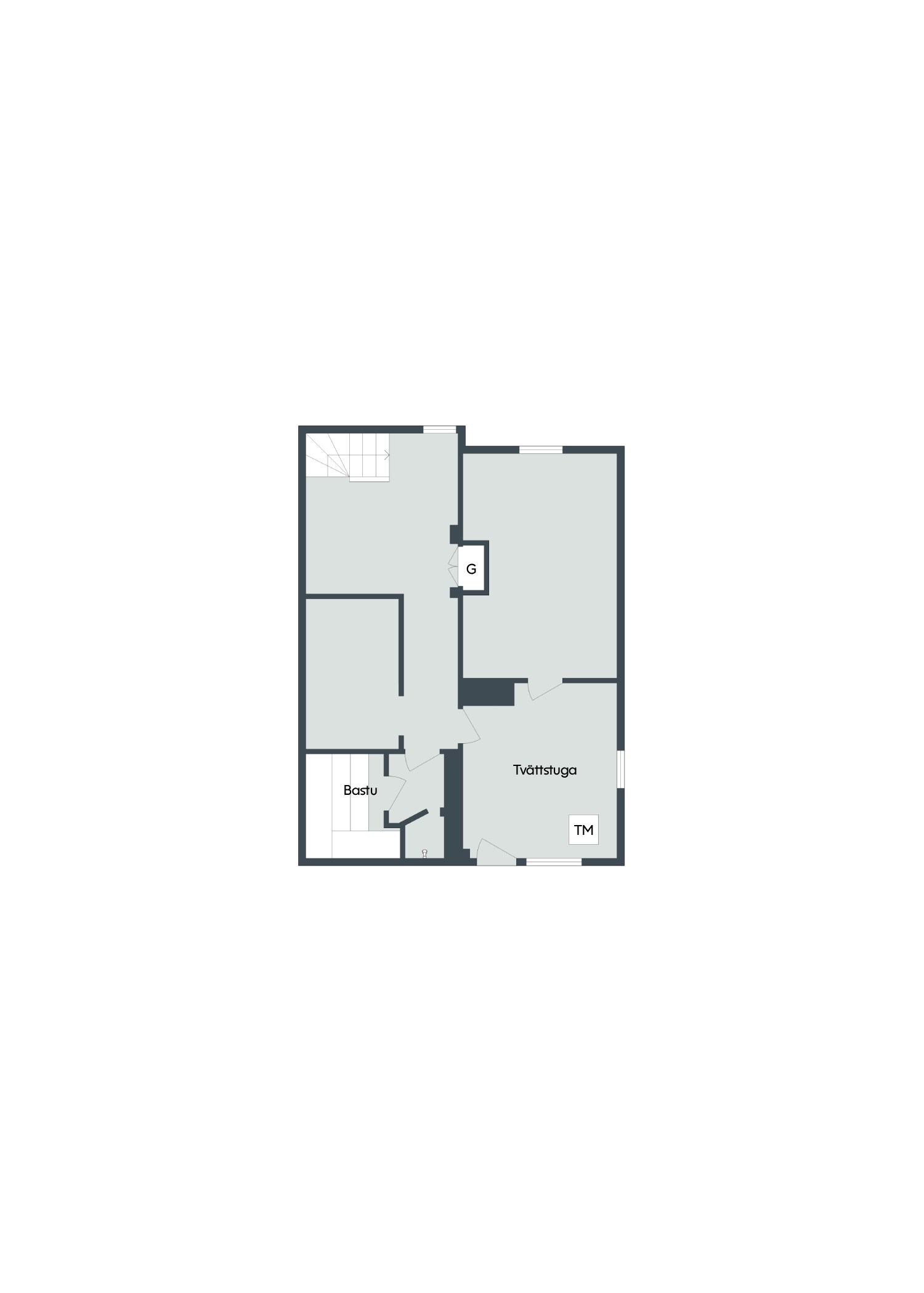 I husets källare erbjuds gott om extra utrymme med putsade väggar och klinkergolv. Här finns bra förvaringsmöjligheter, en funktionell tvättstuga samt en avkopplande bastu med tillhörande dusch.