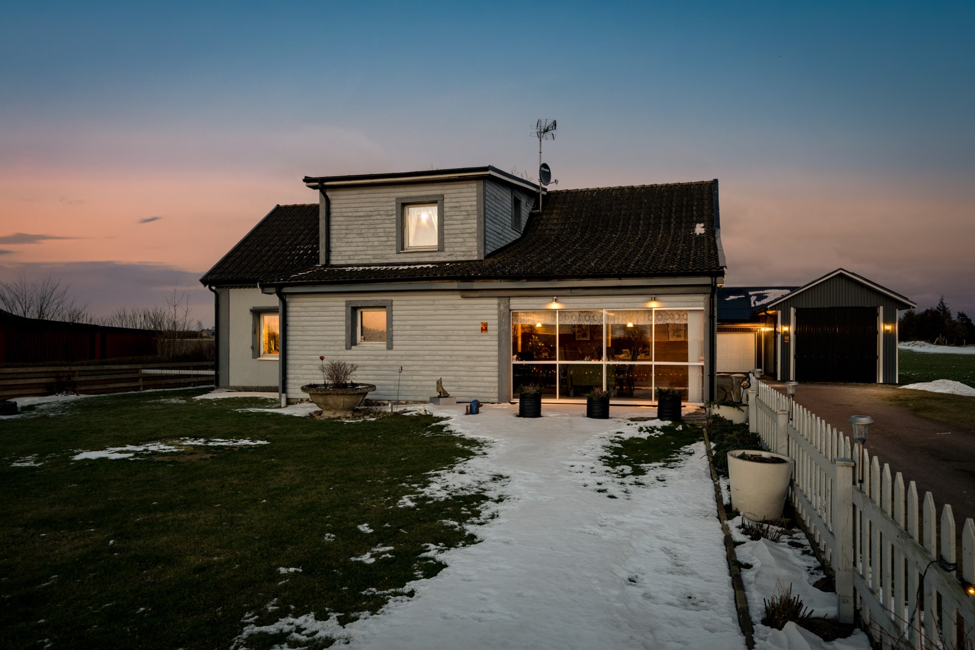 Fastigheten är belägen på ett fritt läge med utsikt över öppna fält och åkermark. Här erbjuds ett lugnt boende i lantlig miljö med god känsla av rymd och avskildhet. Solnedgångarna kan avnjutas från det rymliga uterummet som används flitigt under vår och höst.