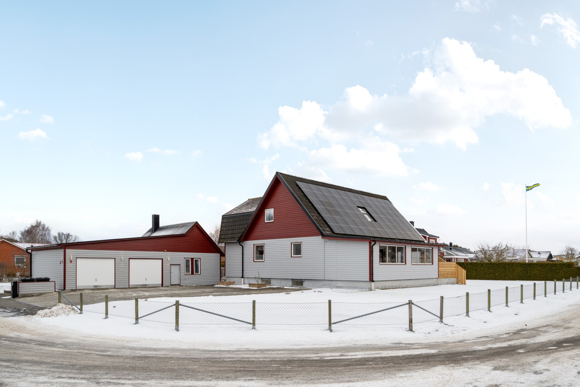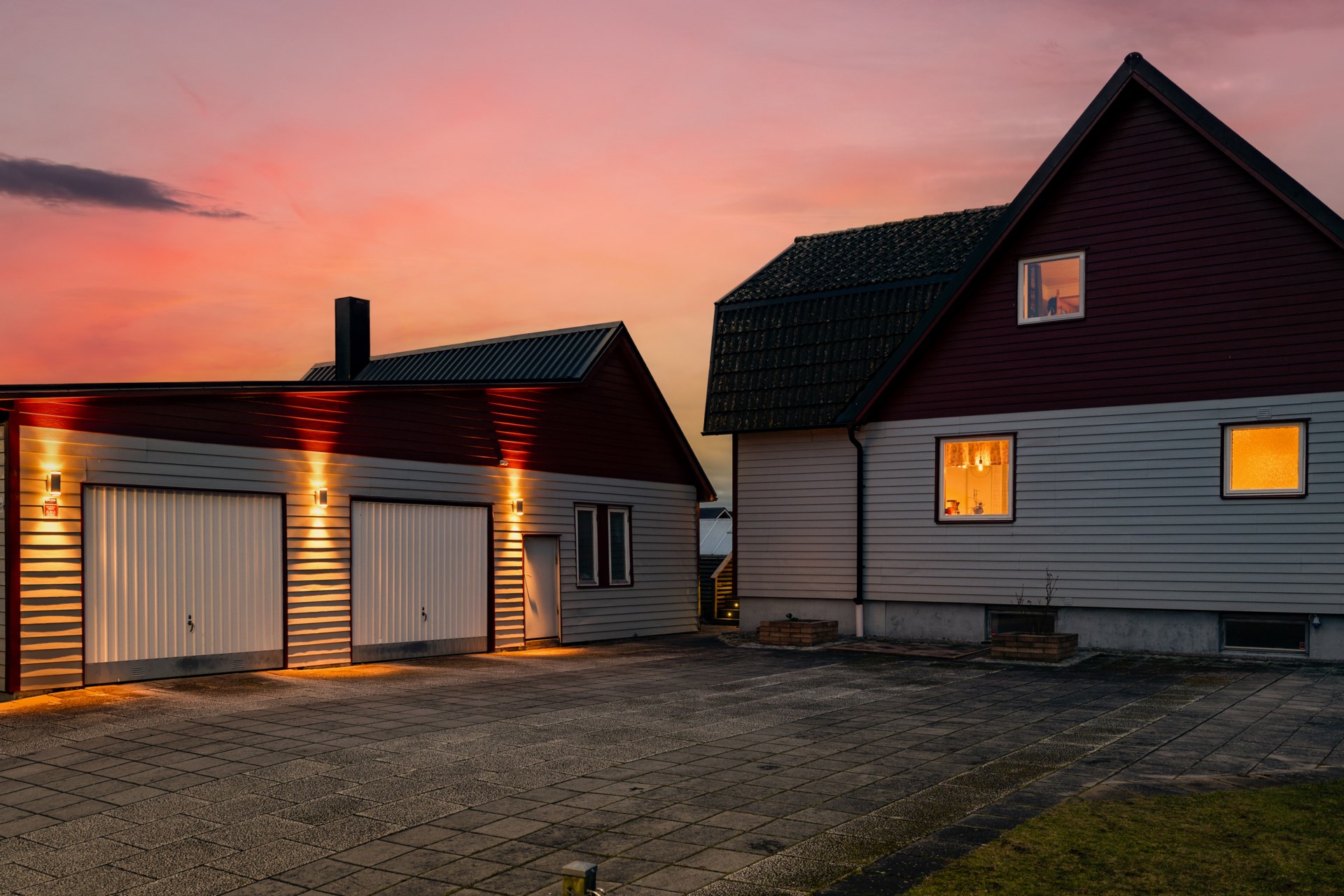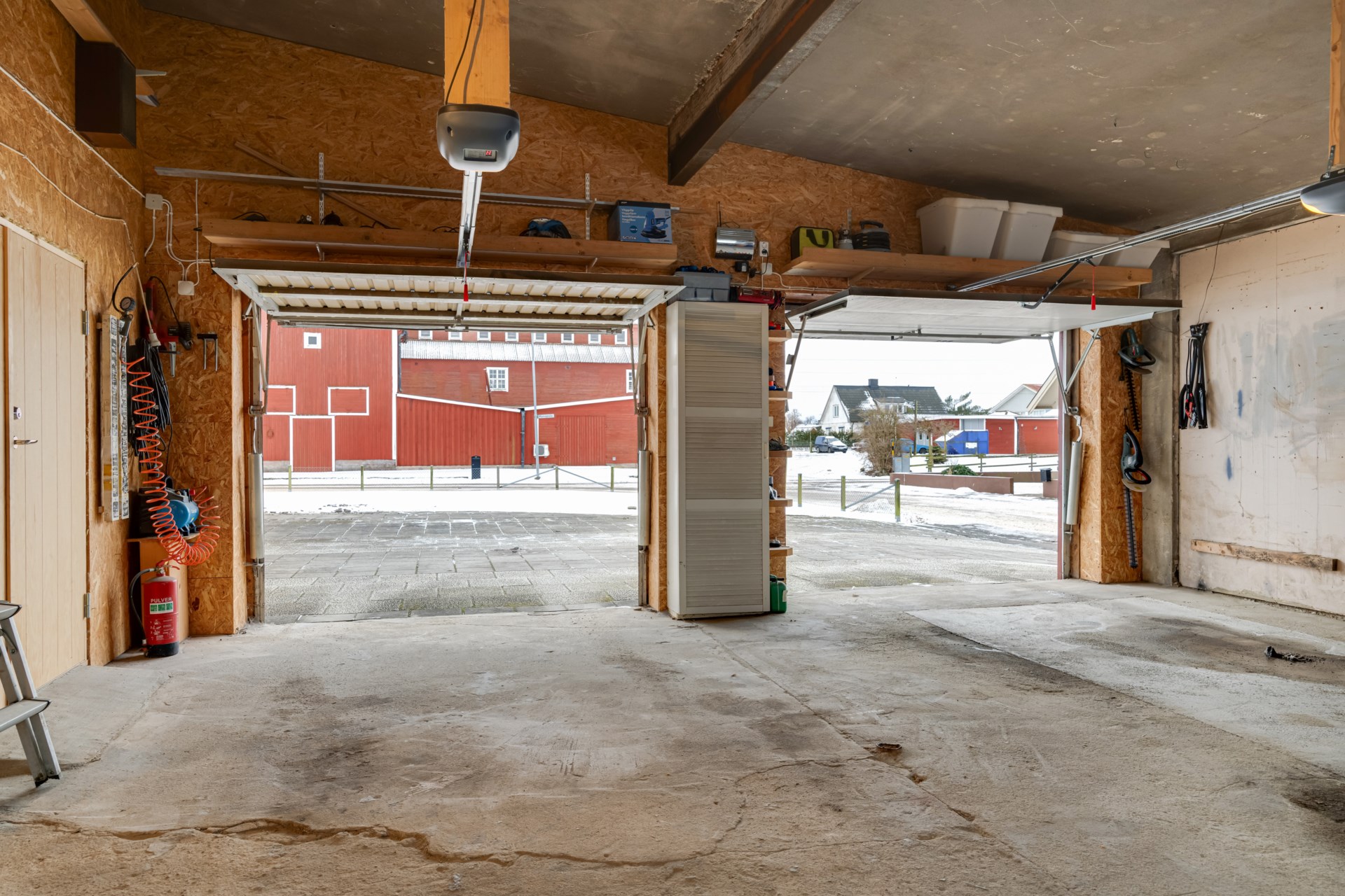Här möts du av en imponerande uppfart med plats för flera bilar samt en separat uppfart som passar utmärkt för husbil eller husvagn. Det stora dubbelgaraget kompletteras av verkstad och förråd – en dröm för den händige eller för dig som behöver extra förvaringsutrymmen.