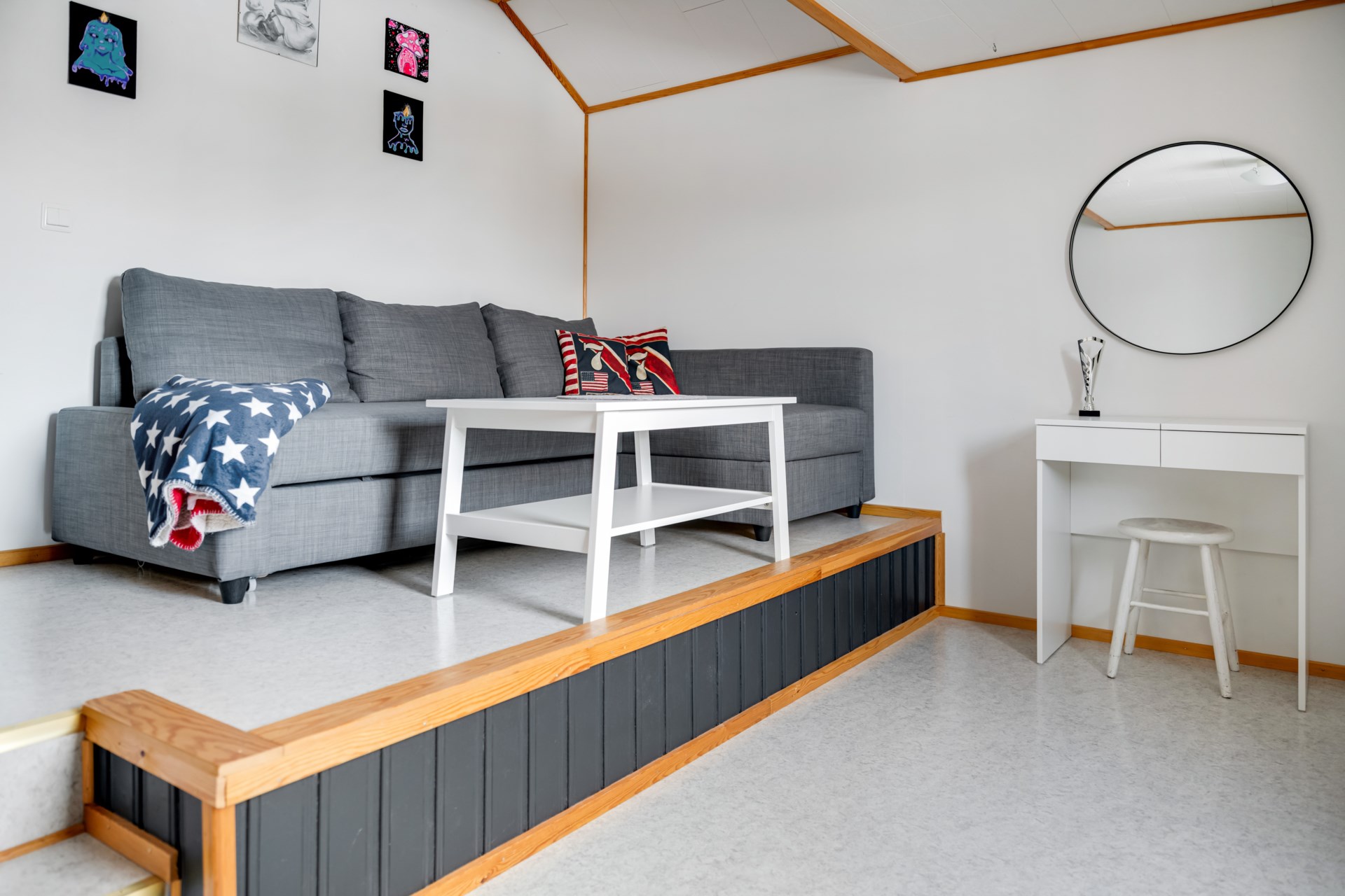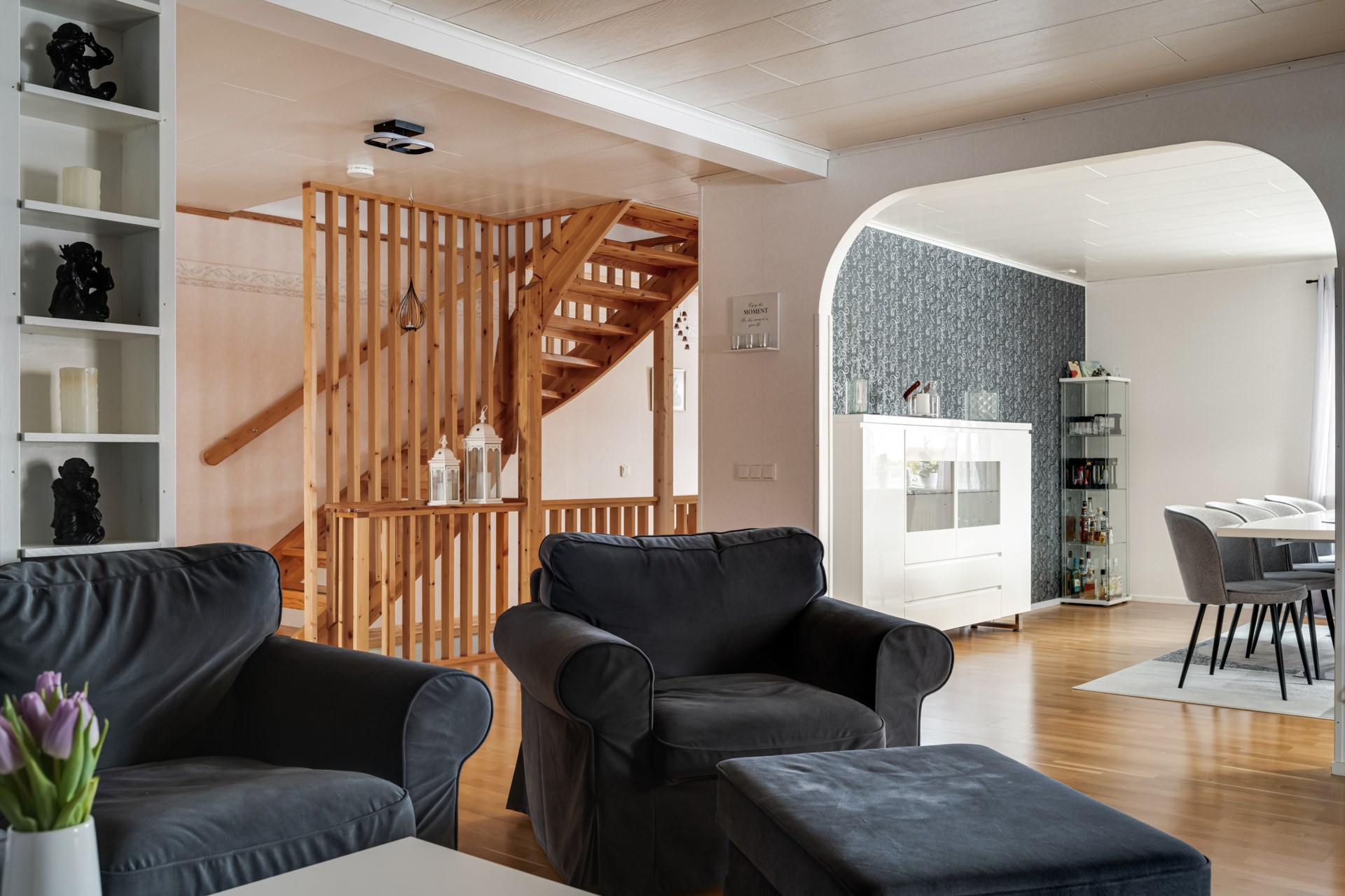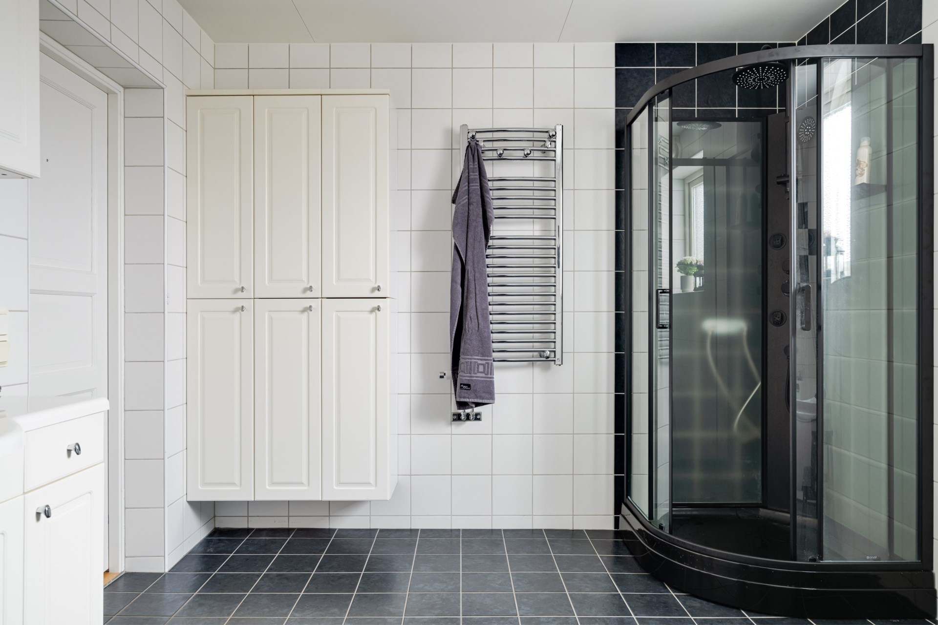 Här möts du av en imponerande uppfart med plats för flera bilar samt en separat uppfart som passar utmärkt för husbil eller husvagn. Det stora dubbelgaraget kompletteras av verkstad och förråd – en dröm för den händige eller för dig som behöver extra förvaringsutrymmen.