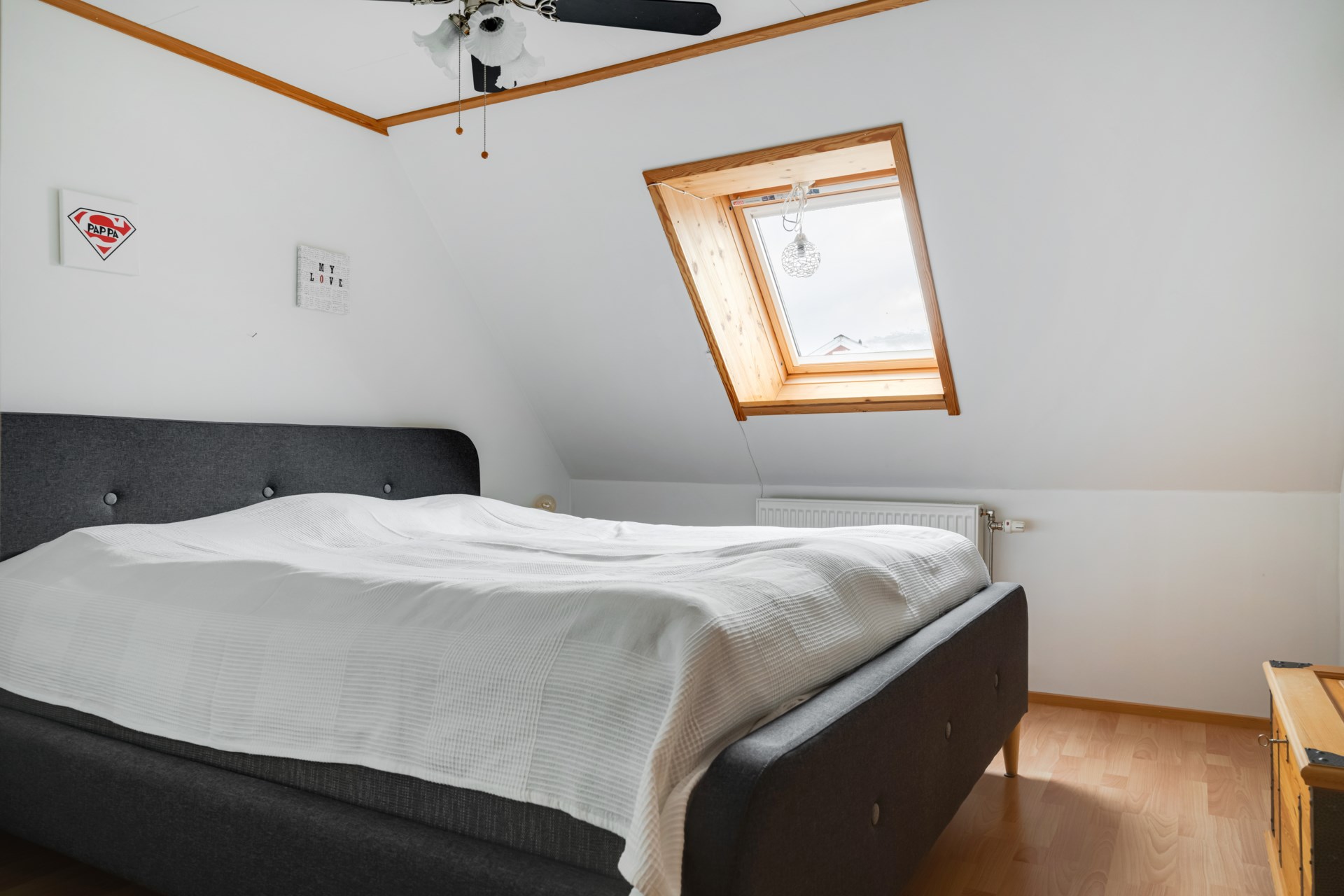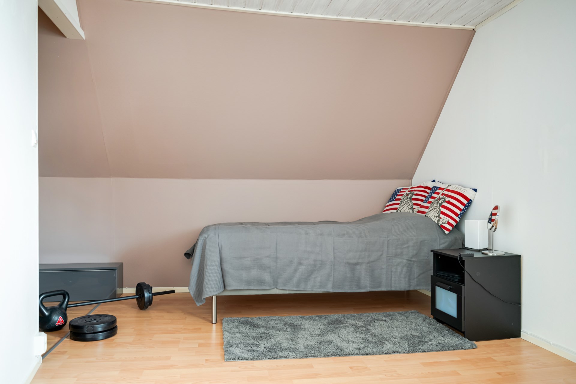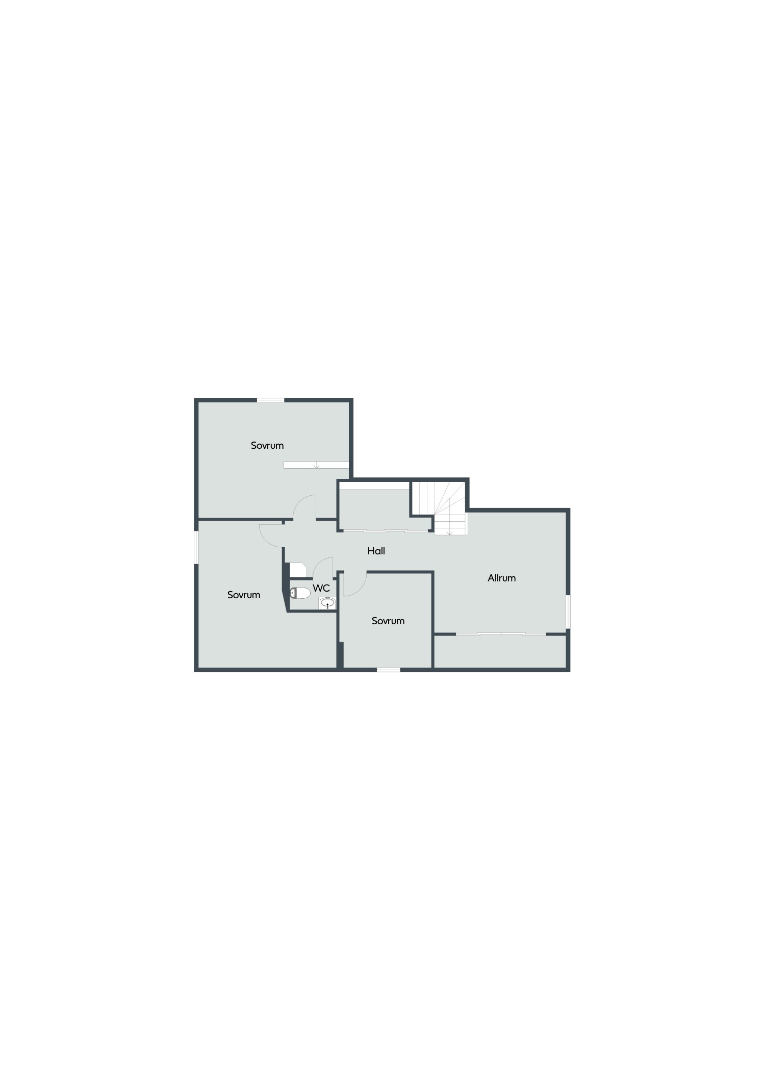 På övre plan finns ett allrum med inbyggda garderobe, tre sovrum samt en WC – perfekt planlösning för familjelivet.