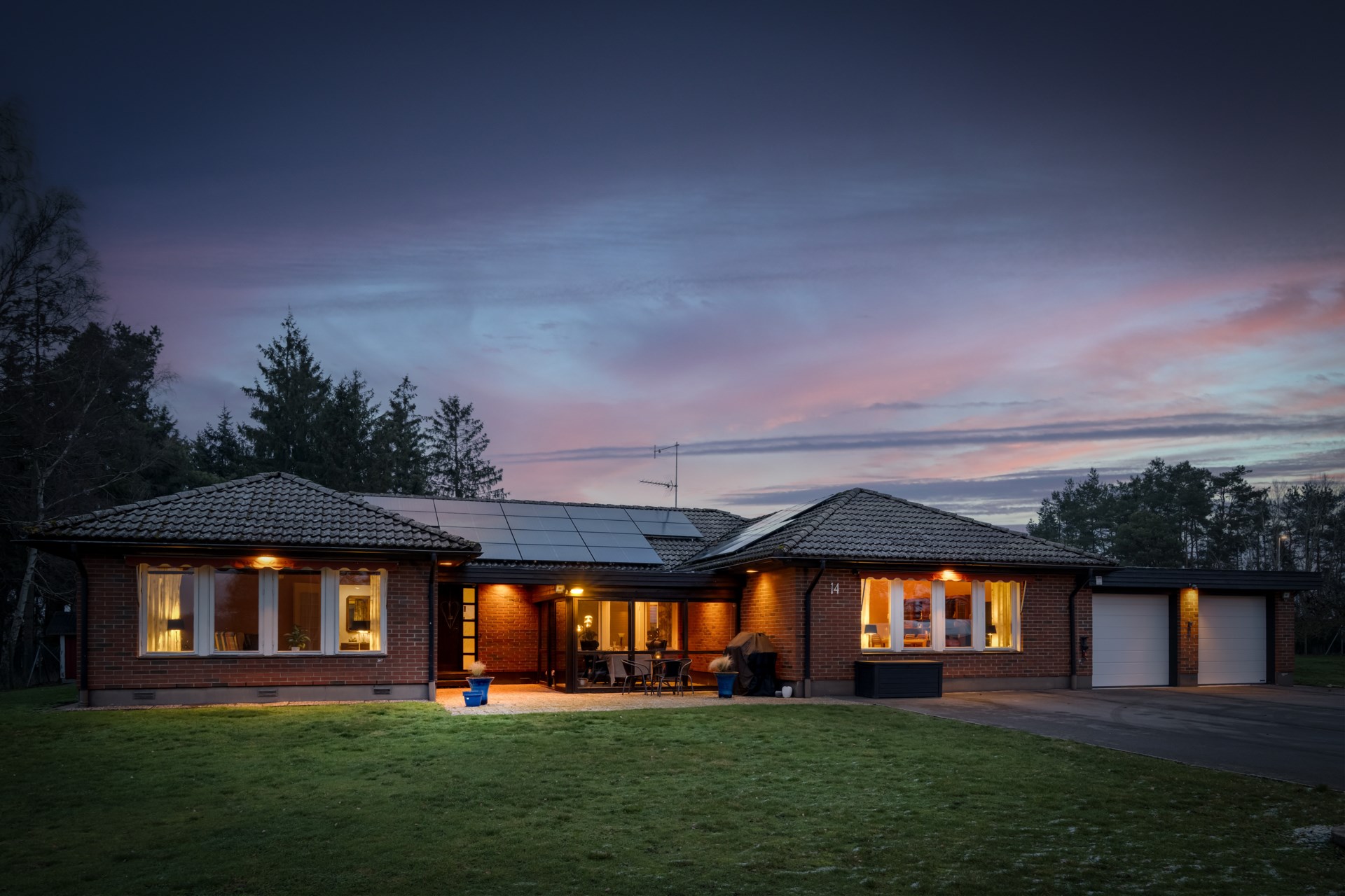 Villan är uppförd 1982 och ligger på en stor, härlig tomt med flera förrådsbyggnader. Försäljningen omfattar dessutom två fastigheter – Säterivägen 14 där bostadshuset är beläget samt den angränsande tomten på Säterivägen 12. Detta öppnar upp för spännande möjligheter för den som kanske vill utveckla, bygga vidare eller investera för framtiden.
